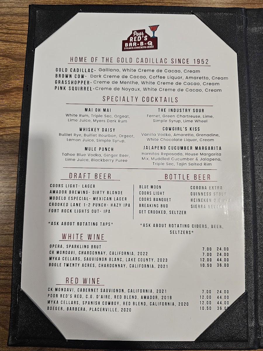Welcome to Poor Reds BBQ, a culinary gem located at 6221 Pleasant Valley Rd in El Dorado, CA. This delightful eatery is renowned for its mouthwatering barbecue and vibrant atmosphere. From signature dishes like Red’s Signature Wings tossed in your choice of Buffalo or BBQ sauce to tantalizing appetizers such as BBQ Potato Skins topped with pulled pork, every bite is a burst of flavor.