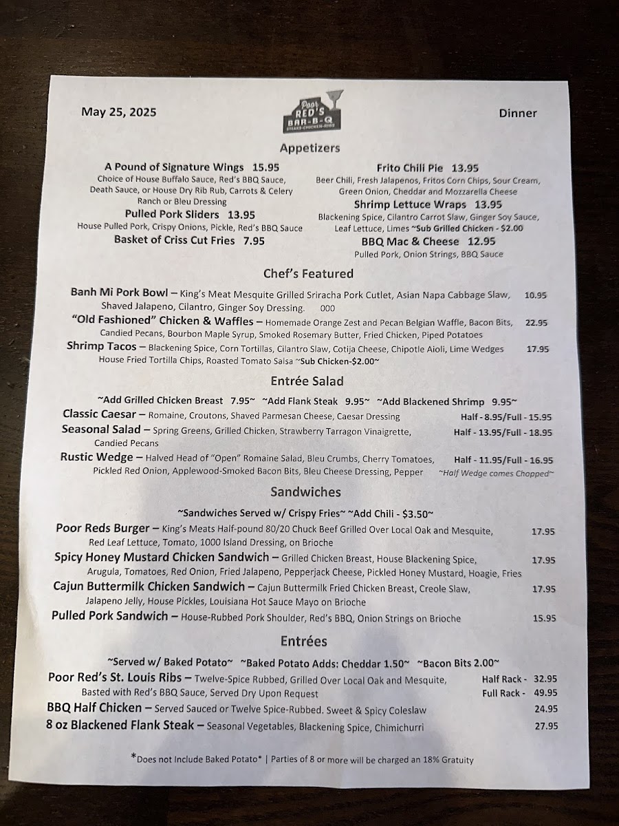 With attentive service as noted by patrons and a lively ambiance, Poor Reds BBQ is the perfect destination for BBQ lovers seeking delicious fare and memorable moments.
